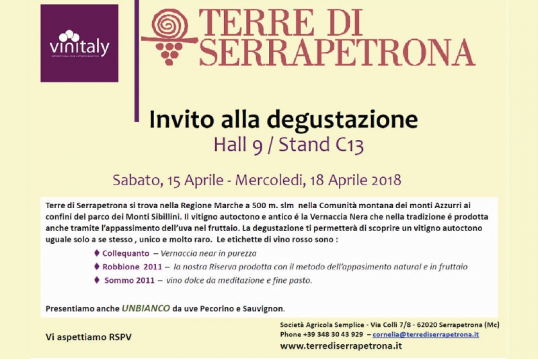 Il vitigno autoctono e antico é la Vernaccia Nera che nella tradizione é prodotta anche tramite l’appassimento dell’uva nel fruttaio. La degustazione ti permetterà di scoprire un vitigno autoctono uguale solo a se stesso, unico e molto raro. Presenteremo anche UNBIANCO da uve Pecorino e Sauvignon.