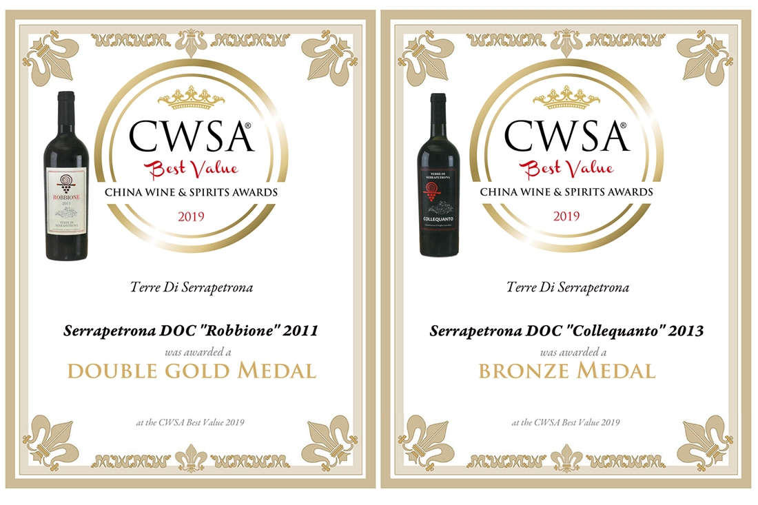 Il Chinese Wines and Spirits Award ( CWSA ) ha premiato con l'ORO il ROBBIONE e con il Bronzo il Collequanto . Un traguardo che ci rende orgogliosi , dopo una selezione alla cieca fra migliaia di etichette da tutto il mondo condotta da un centinaio di esperti provenienti da diversi Paesi.